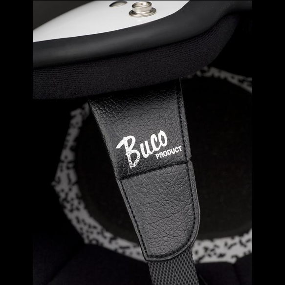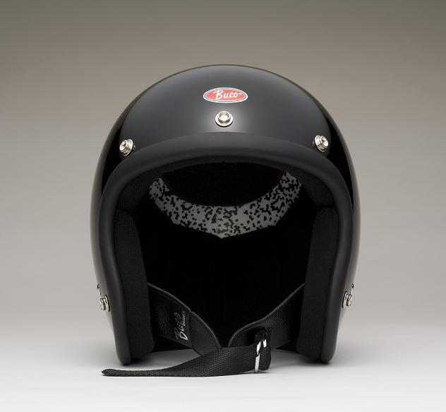 The Moto Buco's slim design -- patterned after jet fighter pilot headgear -- still carries the aura of speed and thrills that it did in the American racing scene of the 1960s and 70s. Those helmets disappeared with the creation of stiffer safety requirements, and full-face helmets became the norm. You can still find vintage Buco helmets in their original box for sale in the marketplace. But old age brings degradation and weakening of the shell, strap, and liner. So those old helmets are unsuitable for use on the road. The Moto Bucos, however, are all-new and made with modern materials throughout. They are unbelievably accurate reproductions. Toys McCoy started from scratch, working with drawings and original helmets to create a high-quality reproduction of this racing classic. The high-strength Styrofoam liner, the super-strong strap, the form of the shell, the width of the trim rubber -- all were faithfully reproduced and created by Toys McCoy Products. No off-the-shelf parts were used, and no compromises were allowed. Every curve of the original helmet was measured and duplicated. Special paint was used to re-create the appearance of the original. And many prototypes were made and tested before finding a liner design that gives such a high degree of comfort. The Moto Buco helmet has passed Japan's stringent SG Standard for use on big bikes (125 cc and up) on the nation's public roads and highways. But please note: It does not have US DOT Standard approval, nor approval in other countries. So check your local regulations before riding with this helmet. In any case whether you wear this retro repro on your ride, or simply showcase it, the Moto Buco will take you right back to those good ol' days.