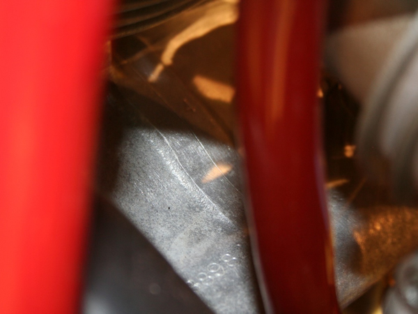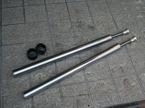 オリジナルで2本ともに曲がりがある。結構きついクラッシュだったのだろう。タンク左の