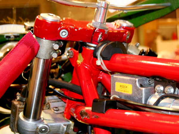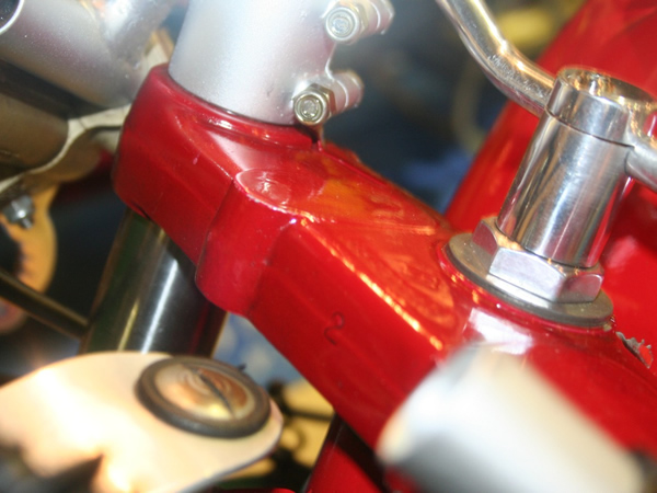 The mark on head pipe in Navy and yellow-gold color would be a verification of MOT in the Classic TT. When we got her, she had an extremely long front-