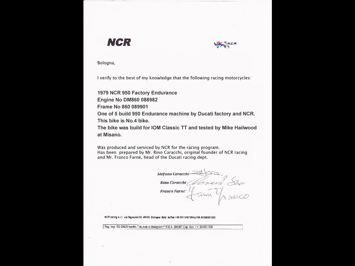 this from Rino Caracchi in 2001). After that, she returned to Italy by Ducati, from the donation by Franco Farne and Rino.
