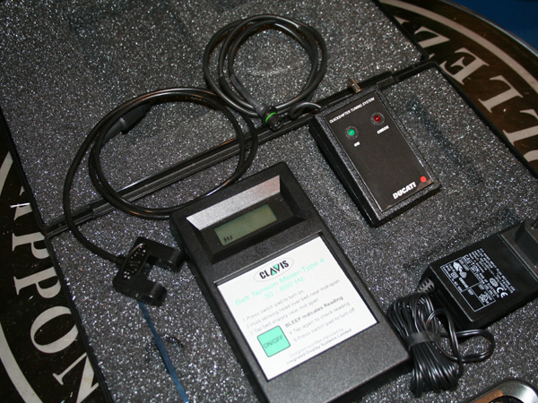ホイールサイズも独特で、16.5インチサイズは、フロント、335、320.315とかで、リアも、570とかである。ラウンドを出すのに試行錯誤である。とにかく市販にあうものがまったくといって良いほどない。また、1品、1品が、べらぼうに高額である。98年ユニットのコンロッドが、特殊で。メタルにつめがないのに驚いた。また、理由はあるのであろうが、いまだに解らない。バルブもインテークは、チタニューム、エクゾーストはニモニックである。ヘッドのシート状態も使い捨ての、ギリギリ感がある。最後に、計測ツール、ベルトをテンションヘルスで図るツールベルトを指ではじき周波数で、フロント、リアをセットするのである。これが結構驚くほどきつい数字であった。また、シフターポイント調整デバイスなるものもある。