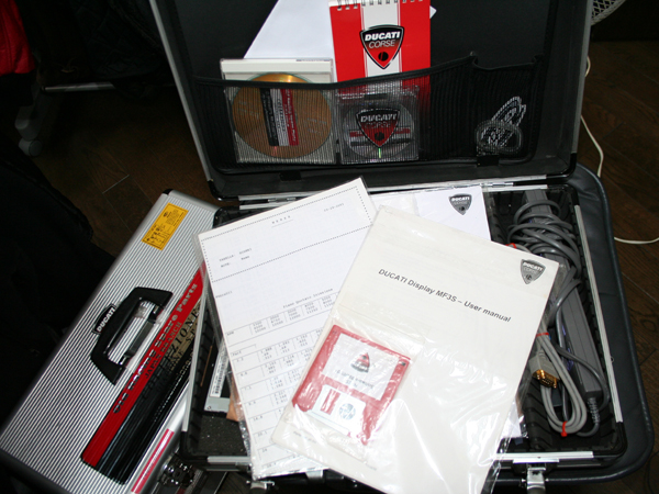 | 1990年代位から、コンピューター(今で言うCPUの)、原点なるものが使用されるようになる。CORSEも、最初は、写真のように、ロムに書き込み、何個も用意して、コースや、様々な条件に対応させたものである。MF-3になったのは、1998年の、FACTORYからでハードデスクがあり、様々なセッティングが、パソコンを使ってすぐさま変更できるようになった。ここに紹介しているのは、所有のRACING-BIKEに使用するもので、勿論オリジナルである。888RSロム、748RSロムその他、1998年FOGGYが、ワールド選手権で使用した、上半期(キャラミ)までの、マッピングである。早く走るとかは又別として、水冷コレクションであれば、この辺まで持っていないと満足感がないであろう。実際CORSE-BIKEでも、チップが、変なものであれば、われわれから見ると、まったく魅力がないものでもある。また、後年になりあわてて探しても、まずめぐり合うはずもないし。工場も前のものは、廃棄してしまっているのである。今となっては、とくにこの辺は貴重なデーターであり、貴重なエレクトロニクスーパーツであろう。また、MF-3になると、写真にもあるように、接続する特殊な、ケーブルがあり、これがないとなにもできない。WINDOWS95、ばかりをあつめ、インストールして使っている。理由はDOSでこのころは動かすのである。やはり、誤作動がないことと、早いのが理由であろう。近年は、モーテックやその他、フルコンの時代であるが、このころは、まだメカニカルコンピューターといった感じである。近年のように、1年前のデバイスでは、決勝にも出れないなど進化のスピードは半端ではないが、おそらく勝ち負けのウエートは、60%くらいはここできまっているように思える。まさにTVゲームさながらで、EGは、10機くらい用意して壊れたら交換するてな感じで重要なのは、マッピングに尽きるようだ。MF-3などはそれからすれば、グリコのおまけのようなものだろうが、フェーラーリF-1 642くらいのころ(プロスト)にも、同じものを使用していた、なんかこのころはまだ、コンピューターいえども、泥臭さがあり、良いものである。要は私でも、学習すれば、動かせたし、理解も出来た。しかし今日のものはそう簡単にはせいはできない。というわけで話は長くなったが、全てパーフェクトに、各保管しているということである。 |
