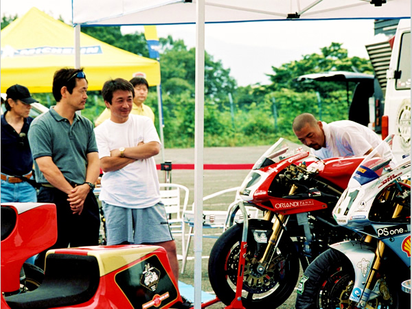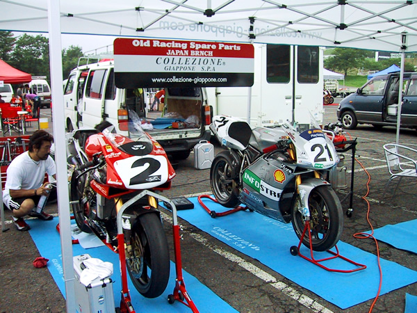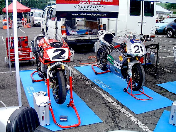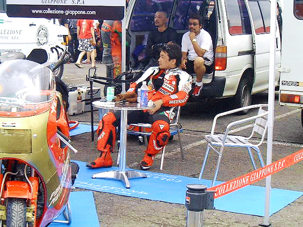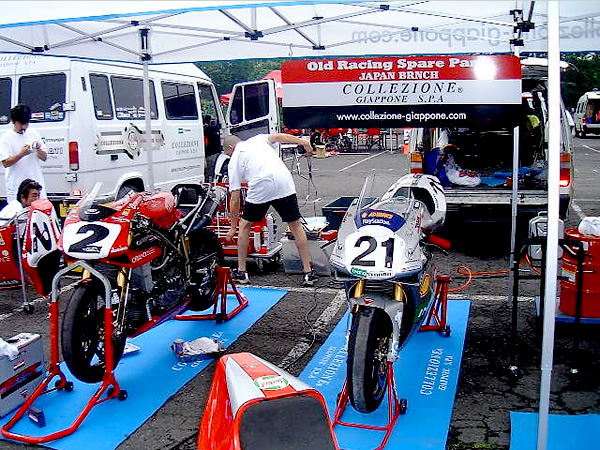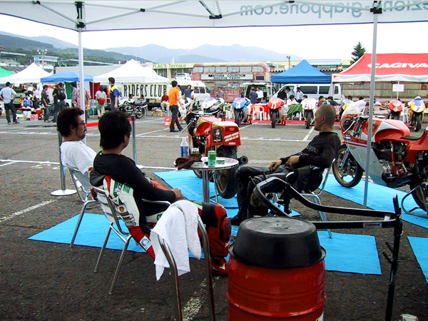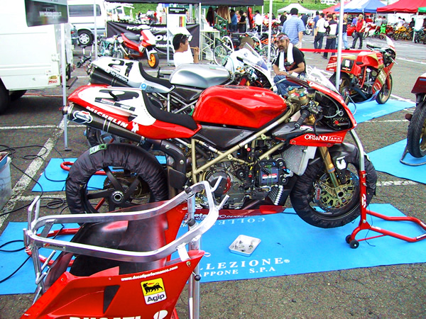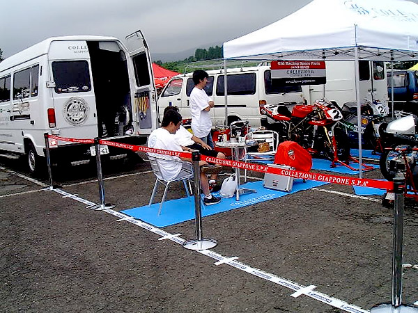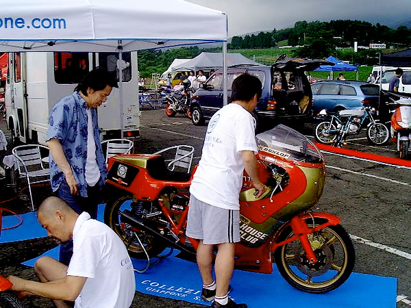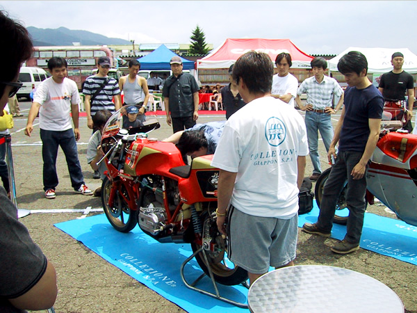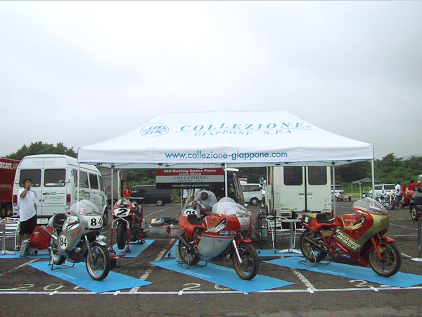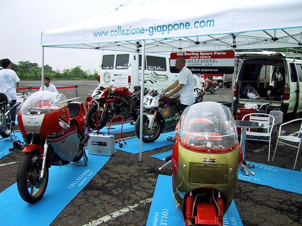 2003年夏行われた、イタリアンモトフェスタ。5台のレーサーを持ち込み走行させた。ある意味盛り上がっていた時期のようにも思える。