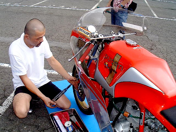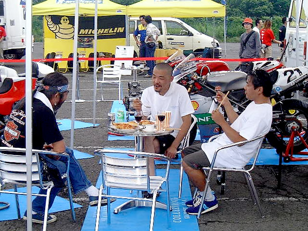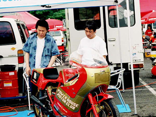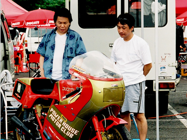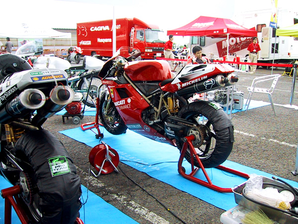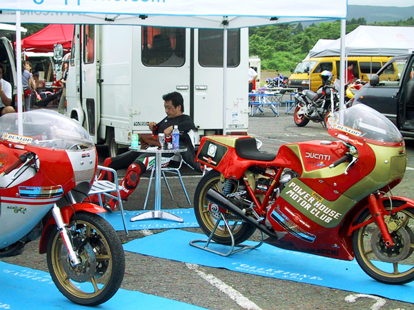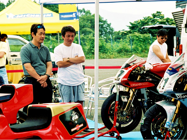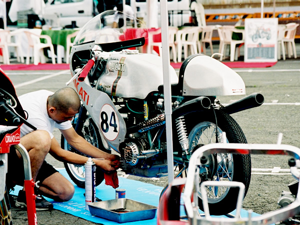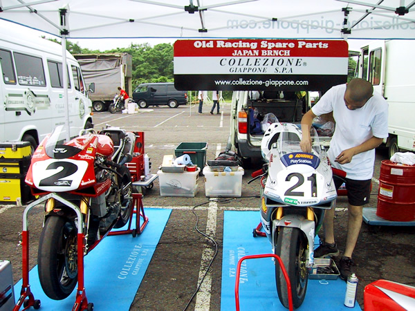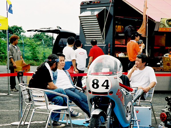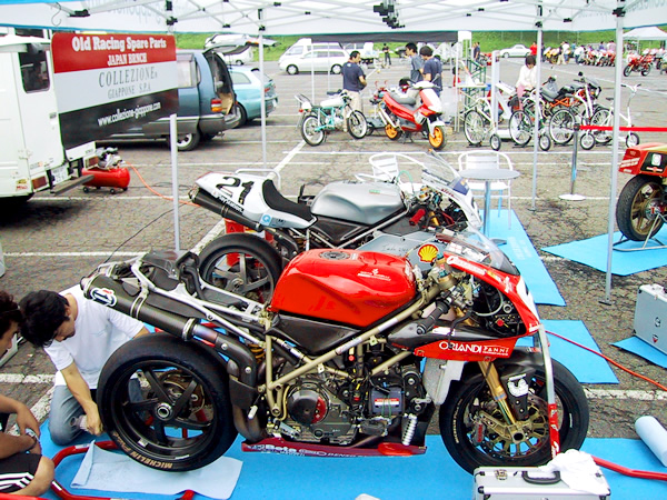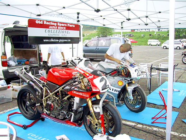 2003年夏行われた、イタリアンモトフェスタ。5台のレーサーを持ち込み走行させた。ある意味盛り上がっていた時期のようにも思える。