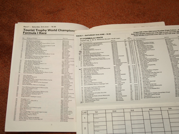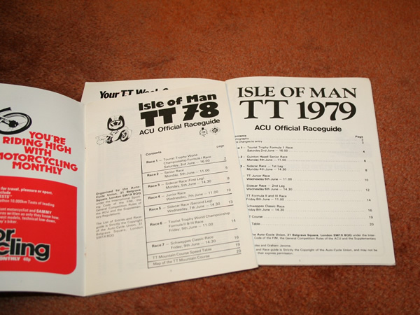 1978-1979年の、MAN-TTオフィシャルレースガイド、各レースエントリーに関して勿論細かな詳細が