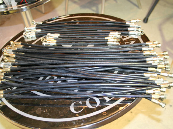 750GT,Sは、初期を除き中間ジャンクション(スカラブ)が入り、ホースも、2ピースになる。短いものと、長いもので1SETとなる。勿論純正新品。マスターからジャンクションのホースが、27mm、キャリパーまでが、44mm、53mmがある。