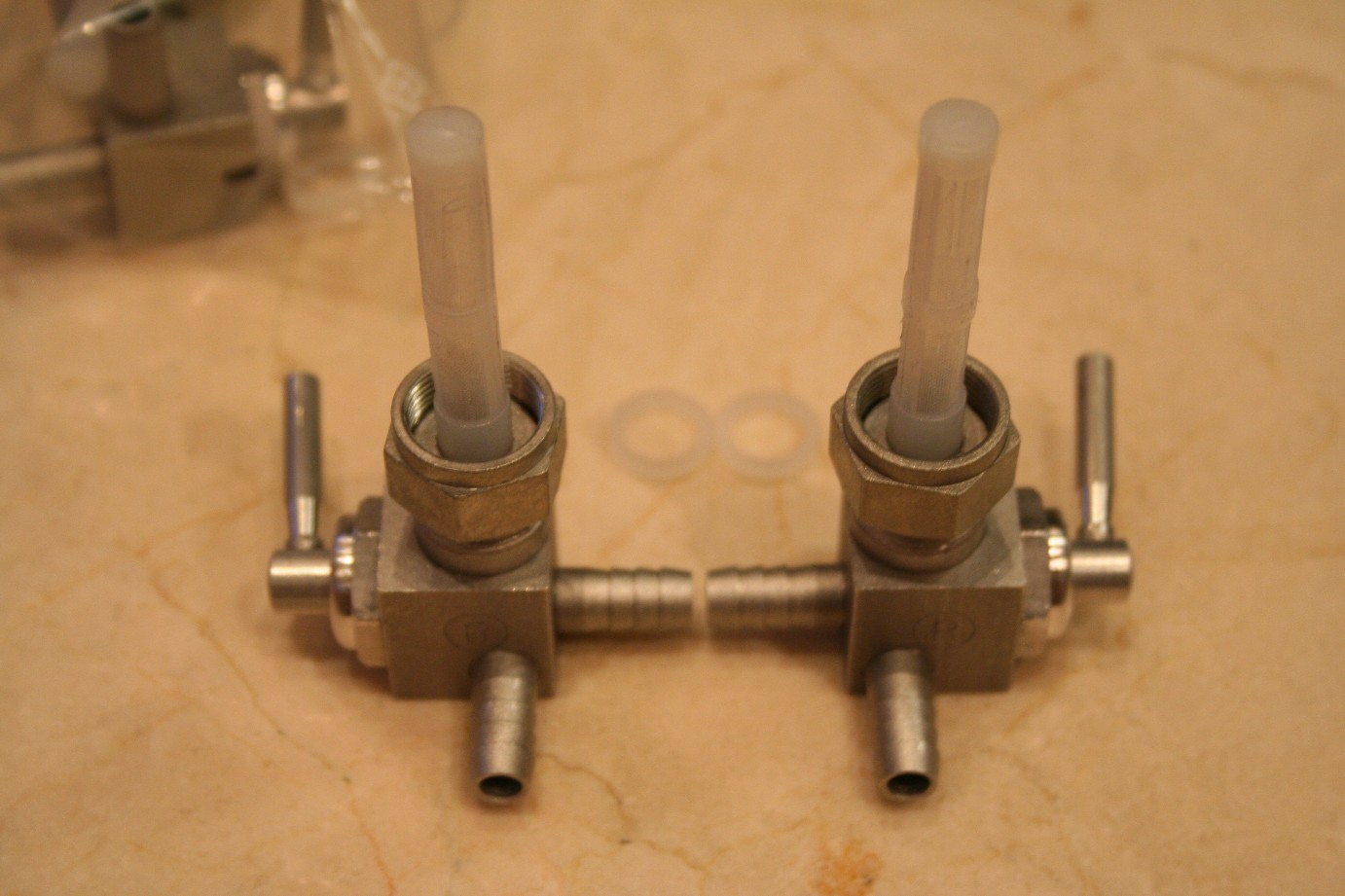 MHR,1000ミレ、R-1,900SS後期型に使用できる、750SS同形状の、ハイフロー型フューエルコック、左右連結パイプがつけられ、ガソリンが、スムーズに落ちる。キャブ側をダブルバンジョウにして、より一層ハイフローしようにもできる。(ITALYオールドレーシングスペアーパーツ製)