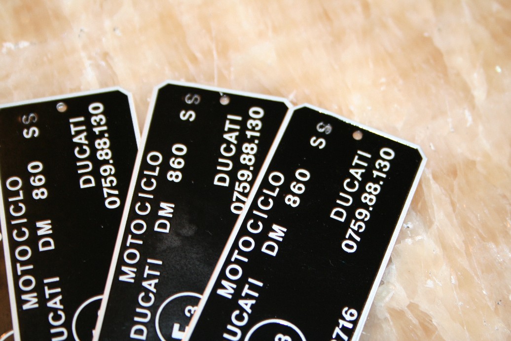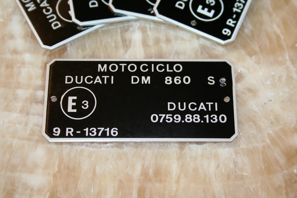900SS用のフレームプレート、860SSのS文字は純正同様の
