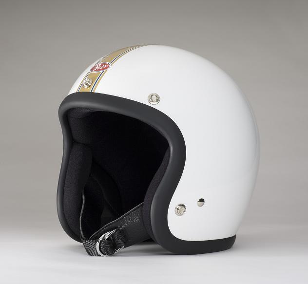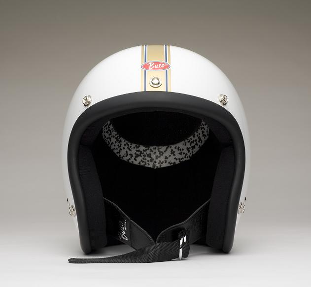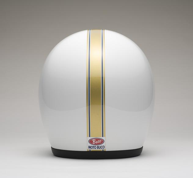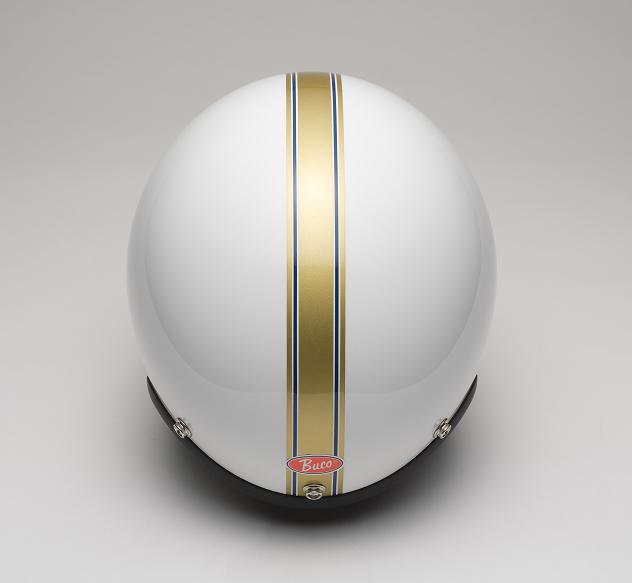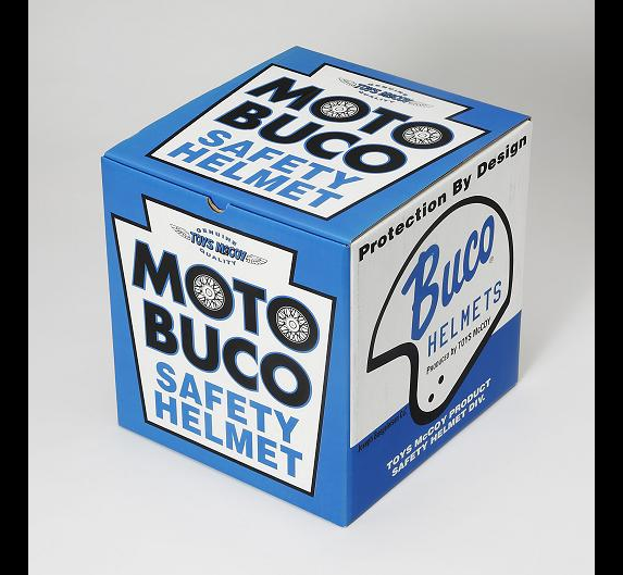 The Moto Buco's slim design -- patterned after jet fighter pilot headgear -- still carries the aura of speed and thrills that it did in the American racing scene of the 1960s and 70s. Those helmets disappeared with the creation of stiffer safety requirements, and full-face helmets became the norm. You can still find vintage Buco helmets in their original box for sale in the marketplace. But old age brings degradation and weakening of the shell, strap, and liner. So those old helmets are unsuitable for use on the road. The Moto Bucos, however, are all-new and made with modern materials throughout. They are unbelievably accurate reproductions. Toys McCoy started from scratch, working with drawings and original helmets to create a high-quality reproduction of this racing classic. The high-strength Styrofoam liner, the super-strong strap, the form of the shell, the width of the trim rubber -- all were faithfully reproduced and created by Toys McCoy Products. No off-the-shelf parts were used, and no compromises were allowed. Every curve of the original helmet was measured and duplicated. Special paint was used to re-create the appearance of the original. And many prototypes were made and tested before finding a liner design that gives such a high degree of comfort. The Moto Buco helmet has passed Japan's stringent SG Standard for use on big bikes (125 cc and up) on the nation's public roads and highways. But please note: It does not have US DOT Standard approval, nor approval in other countries. So check your local regulations before riding with this helmet. In any case whether you wear this retro repro on your ride, or simply showcase it, the Moto Buco will take you right back to those good ol' days.