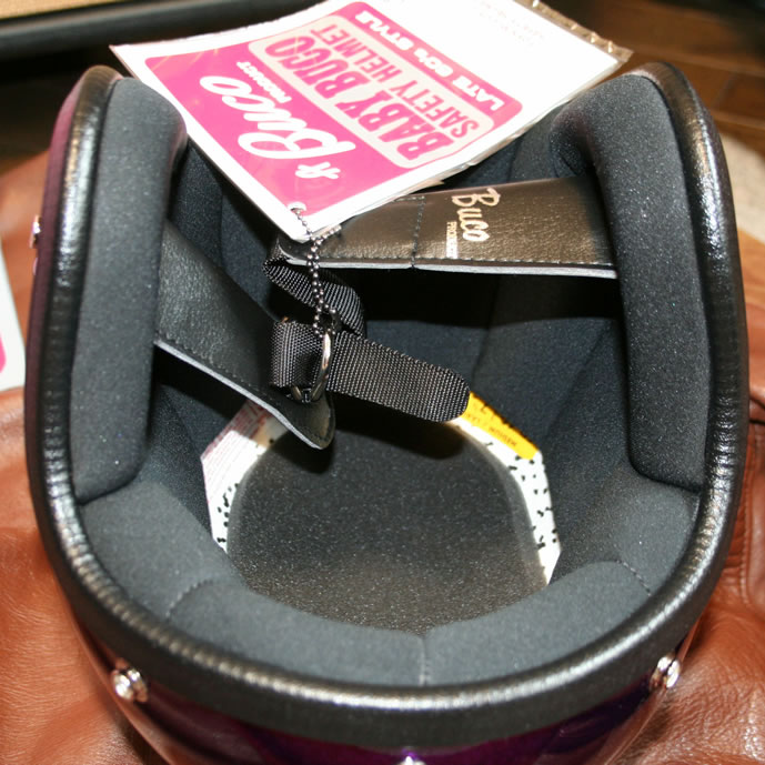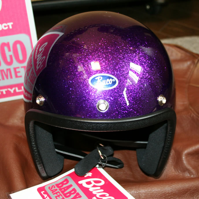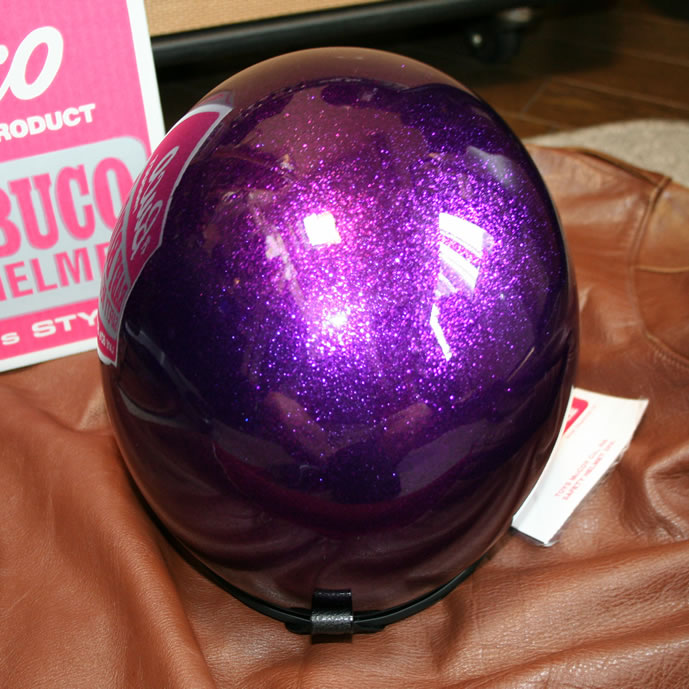 今回のパープルカラーのヘルメットは、ブラックレザー、