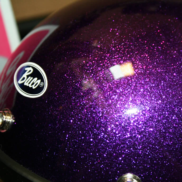 今回、岡本博氏に頼み、パープル色の調合、ラメの光具合など