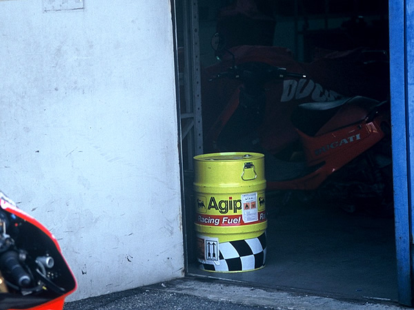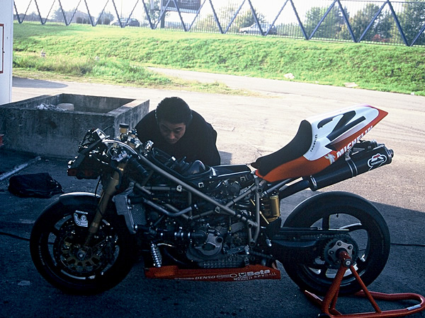 at back yard of Ducati corse in Nov-1998. 2 engineers