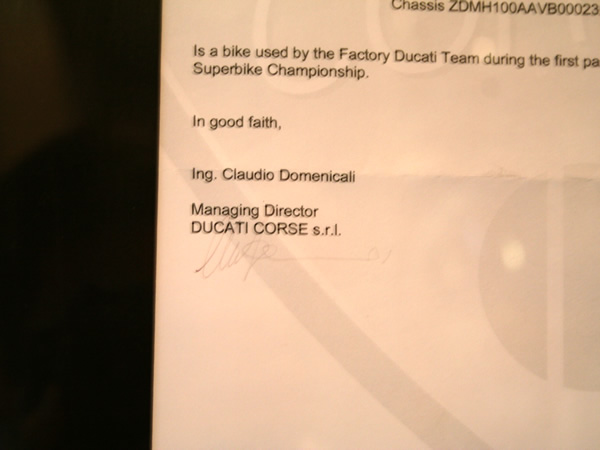 1998 SBK from Ducati corse in Nov-1998. Manager was
