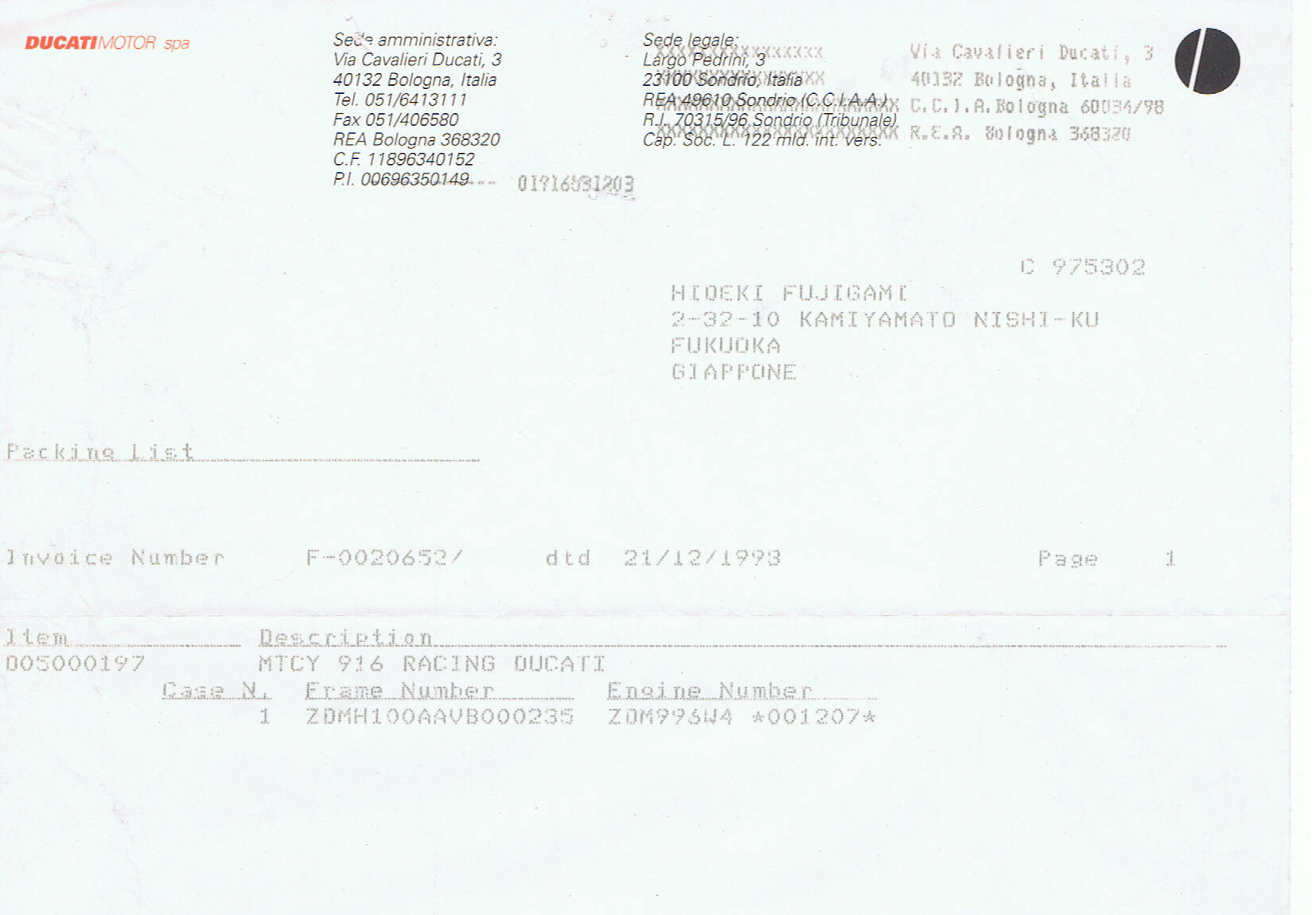 5) 1997 ex factory engine with document from Corse