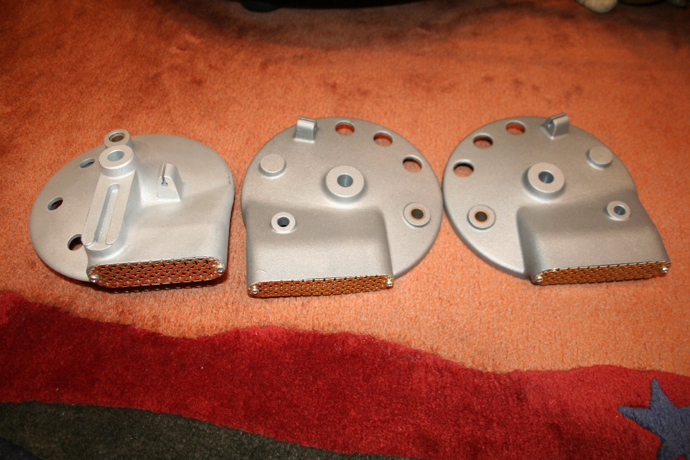 シングルの、純正ブレーキパネルの交換で、トリプルノッカー時代のスタイルになる、エアダクトで、かなりの冷却効果があると思われる。ただし、ききは同じ。砂型鋳造製、フロント180M、リア160M。(グリメカ製)ITALYオールドレーシングスペアーパーツ製)