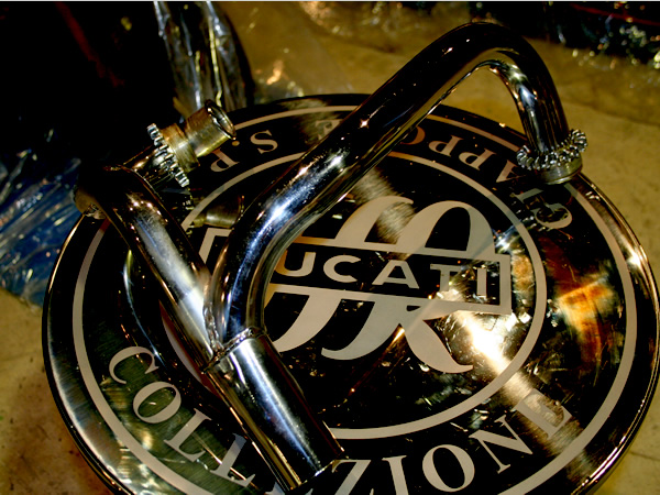 MHRの、アンダーの中に、きれいに納まる。ベルリッキ製クローム仕上げのみ。勿論エクゾストリングも付いている。